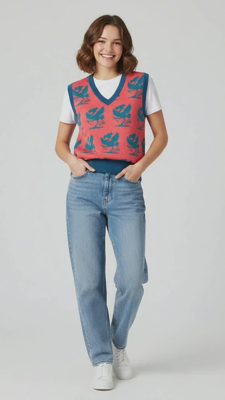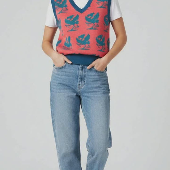 Dancing Flamingo Knit in Pink & Cyan V-Neck Vest