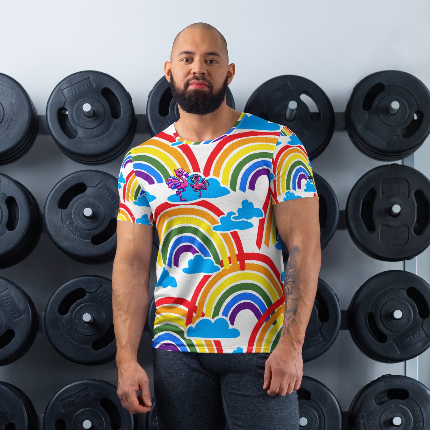 Franny Classy & Sassy Flamingo Rainbow Clouds Athletic T-Shirt (Men's / Unisex Cut)