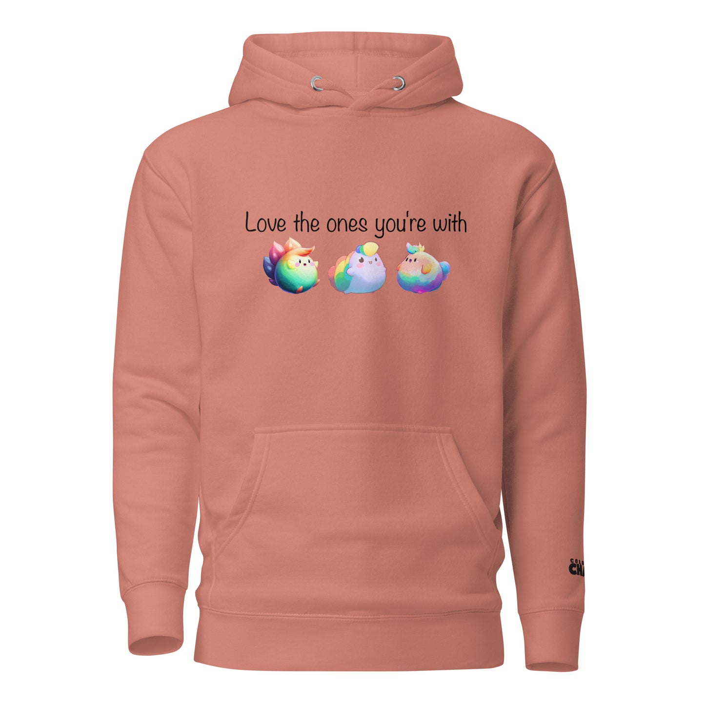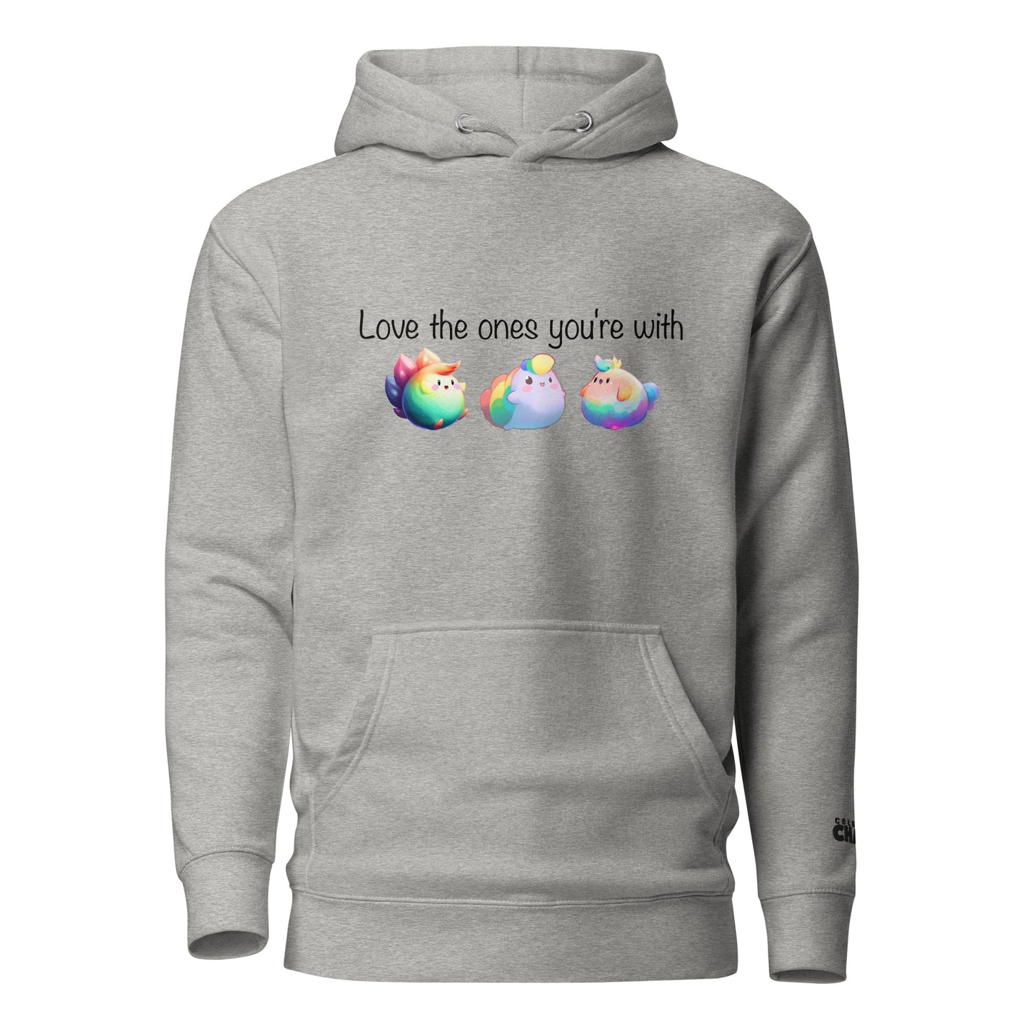 Love the Ones You're With [Black Text] Rainbow Puff Premium Unisex Hoodie