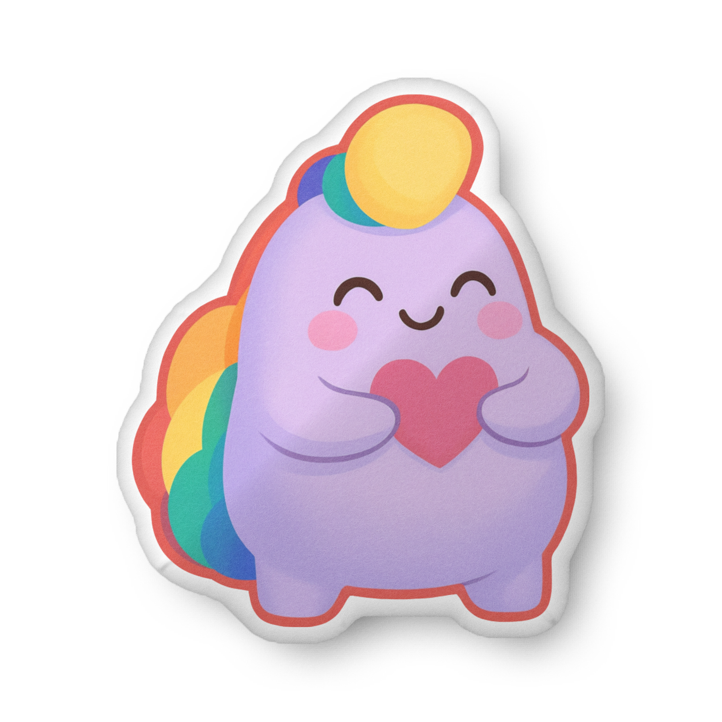 Snuggle up with a custom-shaped pillow of our beloved Nibby hugging a heart. This pillow is soft and zipper-free - perfect for treating yourself or surprising someone special. Available in 3 sizes.